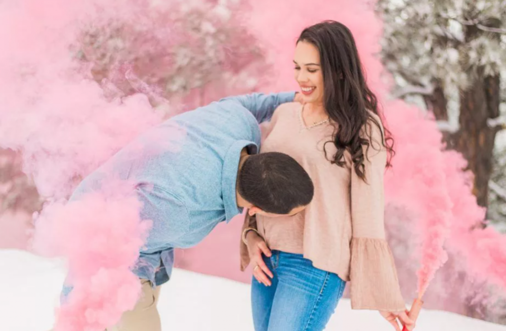 Во многих маркетплейсах продают факелы, где цветной дым, поэтому при покупке не будет никаких проблем. Это своего рода хлопушки, выполненные из картонной трубы, но из них идет густой дым. Конечно, чтобы все прошло идеально, лучше потренироваться. Достаточно попробовать один раз и все будет понятно — тяните за веревку и отводите трубу в сторону. Из нее выходит цветной дым. Кстати, такой факел часто покупают и на день рождения, а также другие мероприятия. Если мальчик, дым голубой, а девочка — розовый.