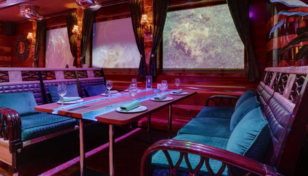 Ресторан «Лодка» выполнен в морской тематике. Основной зал напоминает роскошную яхту с иллюминаторами и изображениями сказочных существ. Гостям предлагаются VIP-каюты с мерцающим полумраком и неоновым освещением. Кухня заведения включает морские, азиатские, японские, китайские и корейские блюда. Ресторан принадлежит известному боксеру Косте Цзю.