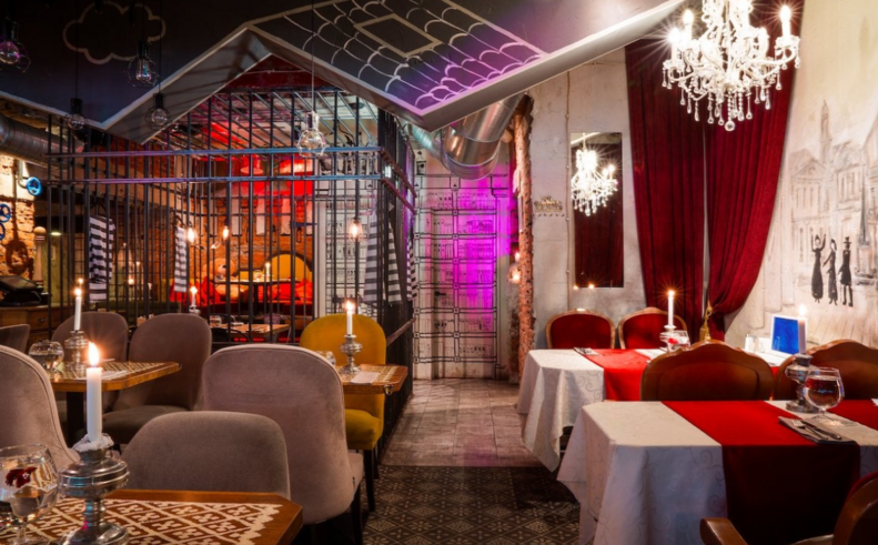 Концептуальное кафе «Кусочки» на Шаболовке превращает обычный ужин в захватывающую интерактивную игру. Интерьер заведения представлен несколькими тематическими зонами, каждая из которых имеет свою историю и необычный дизайн. Гостям предлагаются локации на выбор: «Тюрьма» с железными клетками, «Госпиталь» с потертыми стенами и больничными койками, «Театр» с откидными креслами.