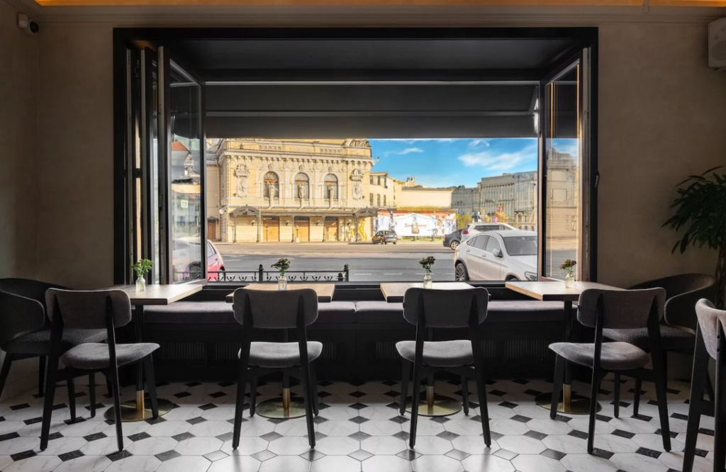 Гребешки — ресторан с индустриальным дизайном и видом на Неву создает стильное пространство для деловых встреч. Здесь можно провести как небольшие переговоры, так и крупные мероприятия, благодаря просторной зоне для банкетов и ивентов.