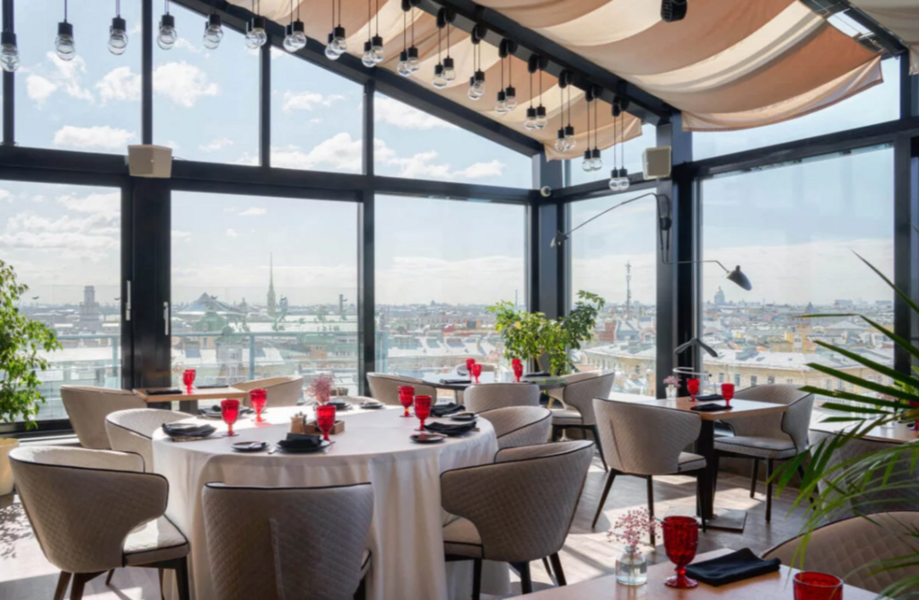 Панорамные рестораны — это не только гастрономические открытия, но и возможность полюбоваться на великолепные виды культурной столицы. Одним из таких мест является ресторан Горизонты. Расположенный на крыше, этот ресторан дарит гостям незабываемые моменты с видом на исторический центр Санкт-Петербурга. Горизонты — это уникальное заведение, где панорамные окна открывают захватывающий вид на главные символы города. Заведение располагает как открытой, так и крытой террасой, что позволяет наслаждаться атмосферой Петербурга в любое время года.