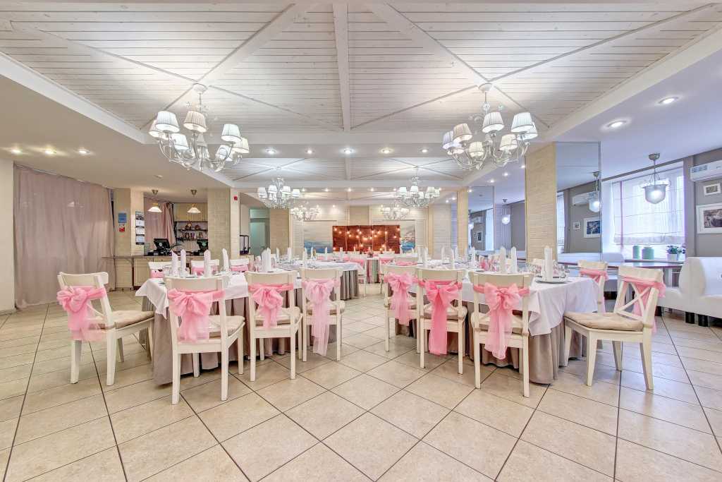 Это современное помещение с морской тематикой в интерьере отлично подходит для проведения свадеб, юбилеев, корпоративных встреч и других мероприятий.