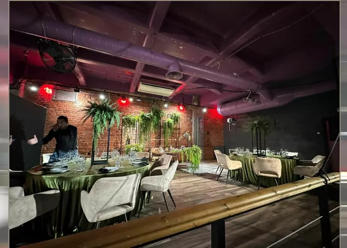- Launge зона на втором этаже с отдельным входом с улицы, откуда обеспечен полный обзор на сцену, может служить для организации разных зон активности во время мероприятия: Roll- бар (предложение от Шеф-Повара ресторана), Coktail бар , где приветливый бармен будет приветливо обслуживать гостей по системе All inclusive, Кальянная зона, Welcome и т.д