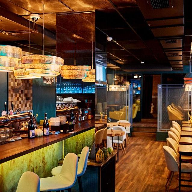 Уютный ресторан на Садовой-Спасской улице, одинаково подходящий для деловых встреч днем и ужинов в кругу близких вечером. Зал вмещает до 45 человек и разделен прозрачными перегородками — мы постарались обеспечить гостям приватность, не перегружая пространство стенами. В интерьере преобладают натуральные материалы, яркие цветовые акценты делают облик ресторана Eaters запоминающимся.