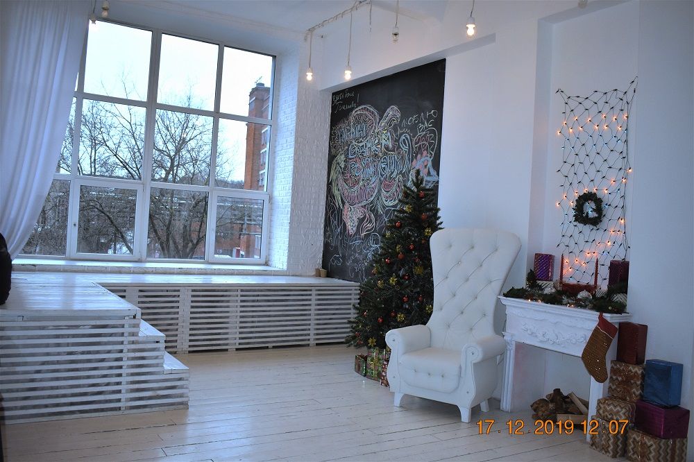 Первая WHITE зона - светлый белоснежный зал с панорамными окнами в пол и потолками 6м., со сценой, пуфами, столами, стульями несколькими фото зонами площадью 50 кв.м. Эта зона прекрасно подойдет для общения, застолья, отдыха и фотосессии.