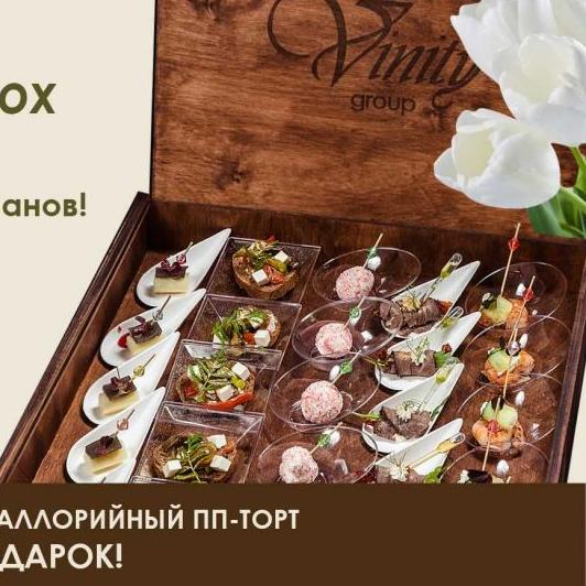 - Бокс-сеты с персональными закусками или полноценный кейтеринг от 10 персон