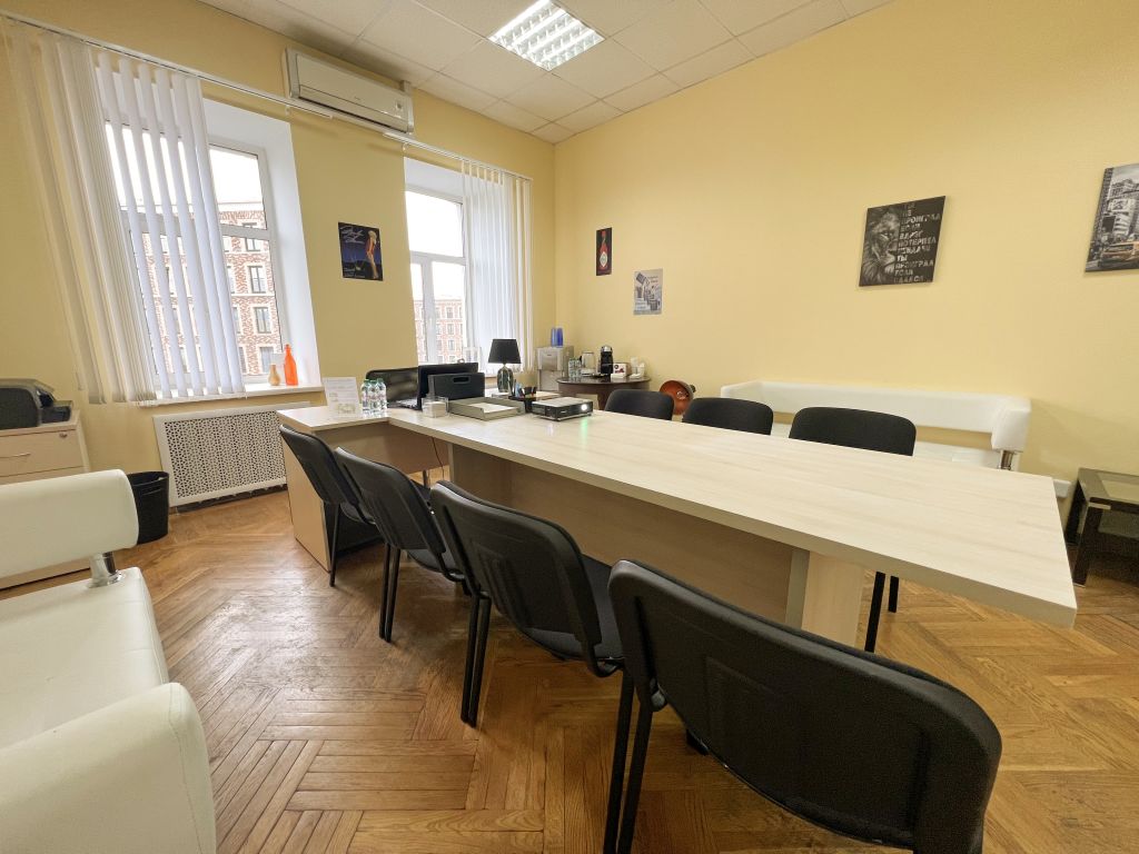 10 посадочных мест, в том числе кресло руководителя, а также удобные диваны для дополнительных участников встречи.