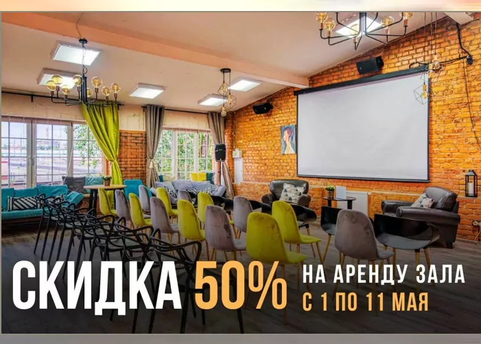 Скидка 50% на аренду лофта для мероприятий с 1 по 11 мая!