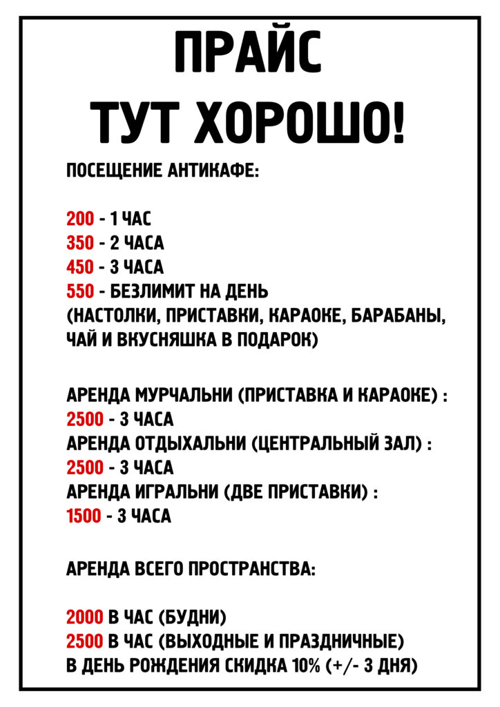 Настольные игры, фильм на большом экране, зоны для отдыха и живого общения создадут ту атмосферу, в которой хочется быть вместе.