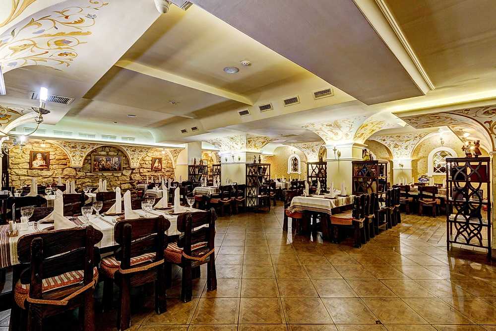 Ресторан русской традиционной кухни. Вас ждут вкусные и сытные блюда, по традиционным рецептам Великой и Малой Руси. Ресторан оформлен в традициях русского зодчества. Несколько ступеней вниз—и вы оказываетесь в роскошных трапезных палатах, с основательной дубовой мебелью. Стены богато украшены росписью и картинами, с сюжетами русских былин и сказок. Окунитесь в атмосферу старой России в самом центре Москвы.