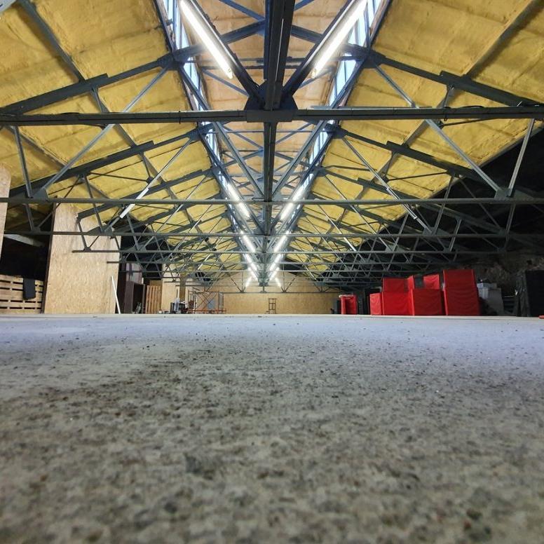 Просторный Industrial-лофт с высокими потолками (8 метров) и атмосферными балками-фермами.