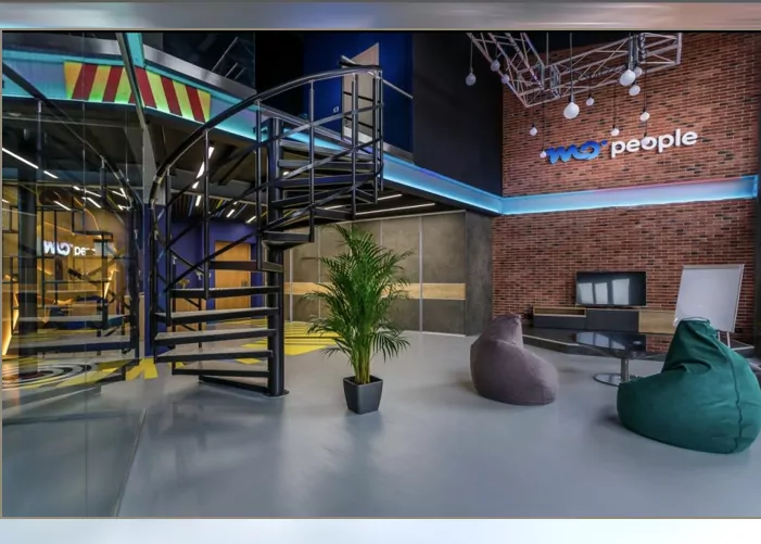 Светлая двухуровневая площадка.Панорамные окна, зонирование под задачи.