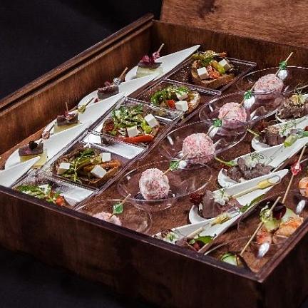 - Бокс-сеты с персональными закусками или полноценный кейтеринг от 10 персон