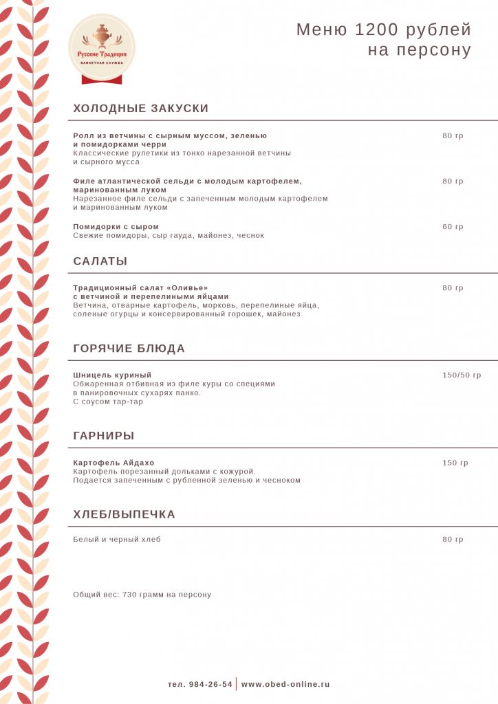 - Возможность подбора и составления индивидуального меню под ваше мероприятие