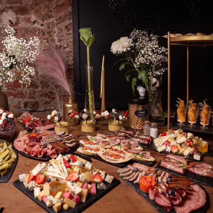 Мы не ограничиваемся канапе и брускеттой, мы делаем паштеты, мясные салаты, панкейки с рыбой, рулеты с крабовым мясом.
