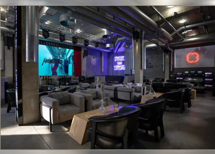 Площадка оборудована кухней, баром и кальяном станцией с большим ассортиментом табачных брендов и вкусов.