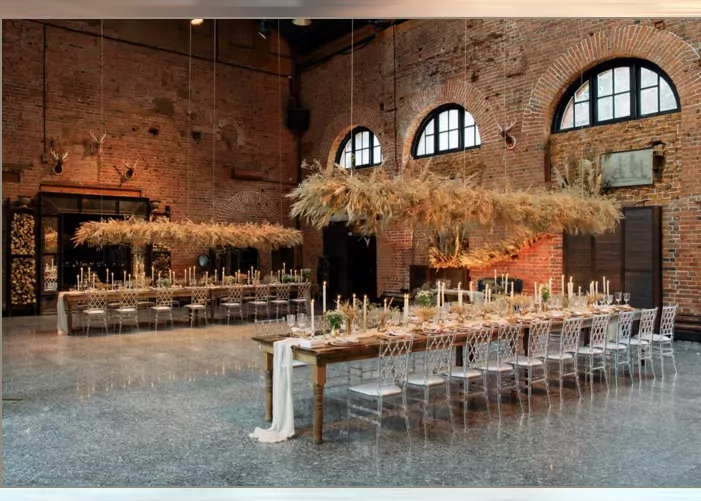 На стенах зала Ротшильдов — необработанный красный кирпич с фактурными полуарками, а на полу мрамор, придающий лоска индустриальному стилю. Пространство освещается через высокие прямоугольные окна, а его сердце —трехметровый камин, который становится центральным местом для гостей события. У зала есть приватная веранда для неформальных бесед и камерных церемоний