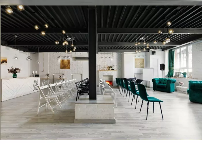 • Мебель: Мягкие стулья, диваны, мобильные столы; гибкое зонирование под сессии