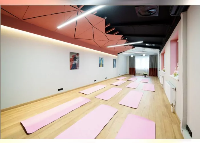 Зал «Розовый кварц» — светлый, мягкий зал, наполненный воздухом и покоем. Природный свет и тишина создают идеальные условия для медитаций и телесных практик.