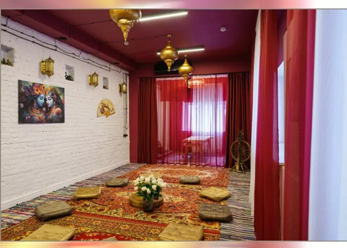 Зал «Красный Шатёр» — тёплое, сокровенное пространство для глубинных женских практик и тантры. Здесь легко сбросить маски, почувствовать принятие и позволить себе быть настоящей.