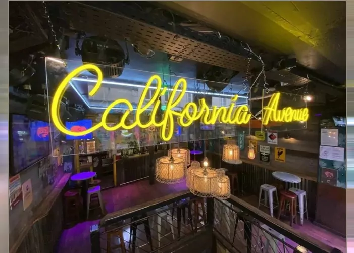 Разноцветный лофт с необычной атмосферой, которую создают кирпичные стены и яркие вставки разного типа декоративной штукатурки и неона по всему пространству