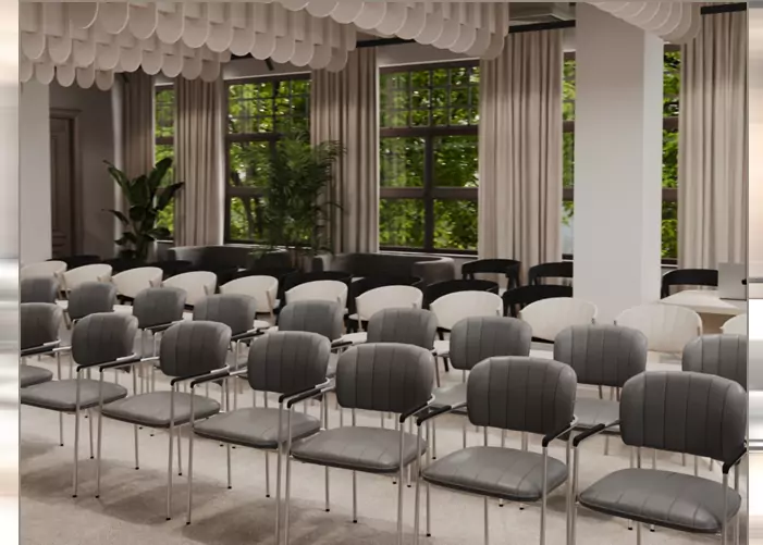 Компактный конференц-зал для рабочих и деловых мероприятий среднего масштаба. Пространство подойдёт для форматов, где важны концентрация, чёткий звук и готовность зала к работе без дополнительной подготовки.