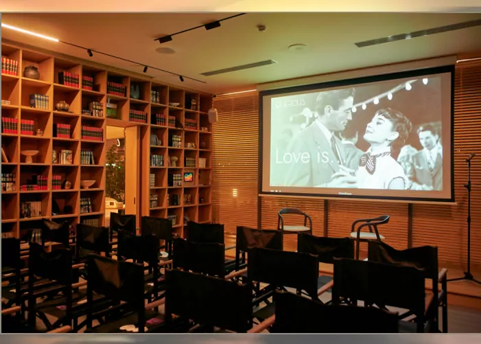 и кинопоказов, а также для праздничных вечеров и деловых встреч. Атмосфера сочетает спокойствие и располагает к общению: мягкий свет, книги, мобильный экран, небольшая сцена.