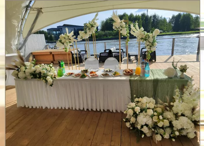 Представьте, как ваши гости наслаждаются атмосферой праздника на берегу водохранилища, окруженные красотой природы и уютом площадки. Мы также предлагаем дополнительные опции: белоснежная яхта, номера и коттеджи для проживания для ваших гостей.